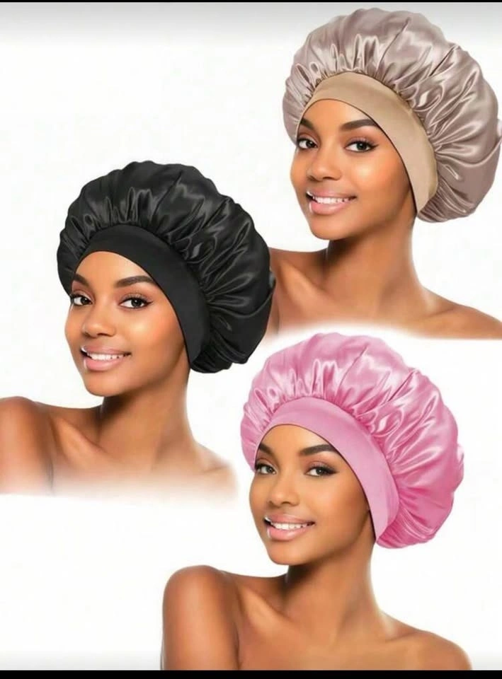 2pcs/1pc Silk Sleep Cap, Satin Hair Cap, Women Wide Brim High Elasticity Cap, Charmeuse Sleep Cap, High-End Satin Hair Care Cap, Curly Hair Silk Headband (Black, Pink & Gold)
