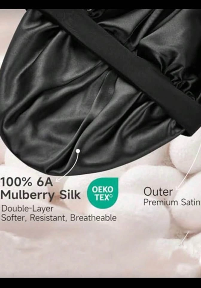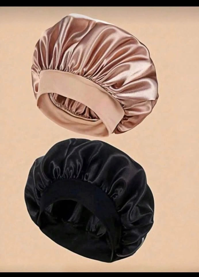 2pcs/1pc Silk Sleep Cap, Satin Hair Cap, Women Wide Brim High Elasticity Cap, Charmeuse Sleep Cap, High-End Satin Hair Care Cap, Curly Hair Silk Headband (Black, Pink & Gold)