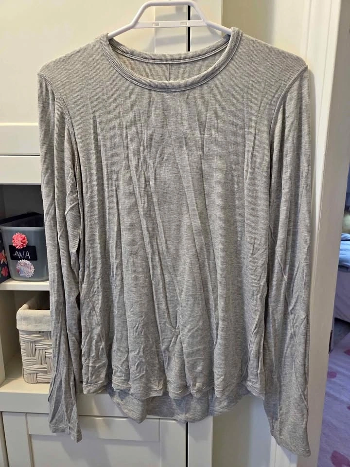 Shirt 1: light Grey ribbed ling sleeve, size 12, EUC $30