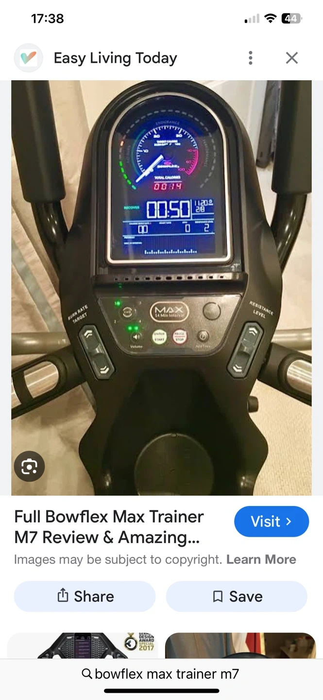 Bowflex Max Trainer M7 elliptical. It has multiple resistance and target burn rate options. Great for a full-body workout at home!