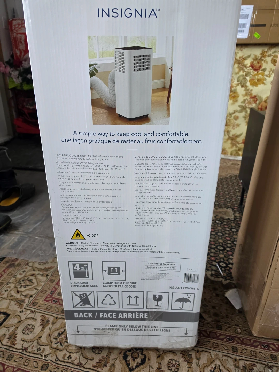I have multiple Insignia portable air conditioner offers three functions(please the the pictures) : air conditioning, dehumidifying, and fan. It's designed for efficient cooling and comfortable air circulation in rooms up to 350 sq ft. The unit includes a remote and an air filter, and it requires a window kit for installation.