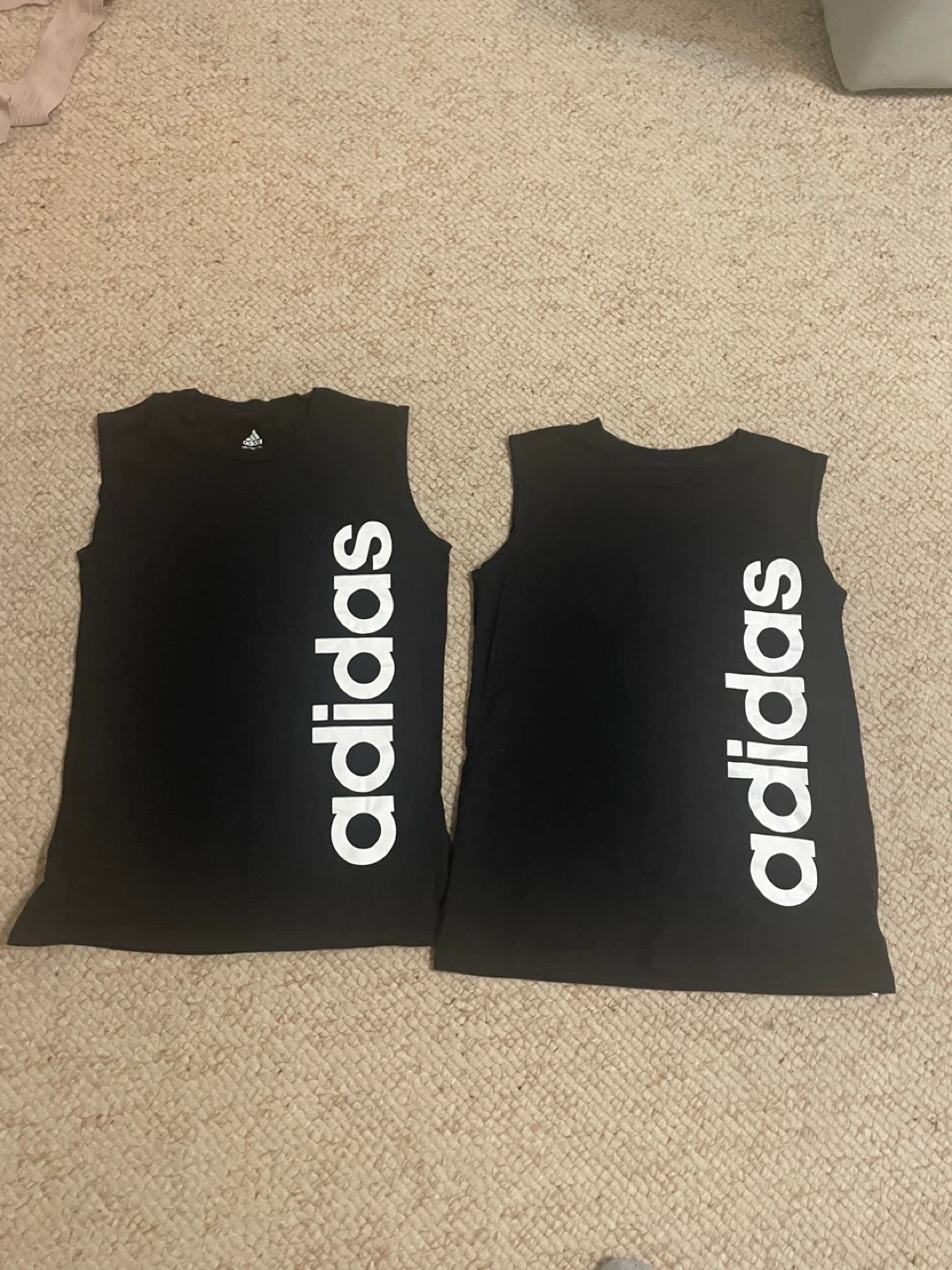 Selling a black Adidas sleeveless top in size medium. It's in great condition and made of 100% cotton. Perfect for workouts or casual wear!
