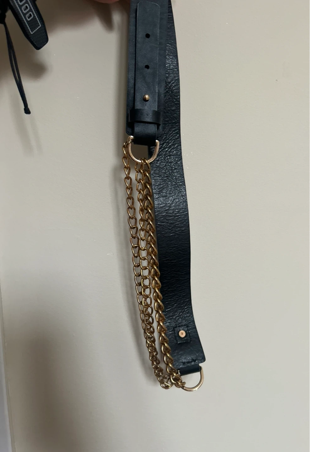 Selling a black strap with a gold chain accent! It's in great condition as it was never used (ran large for me).