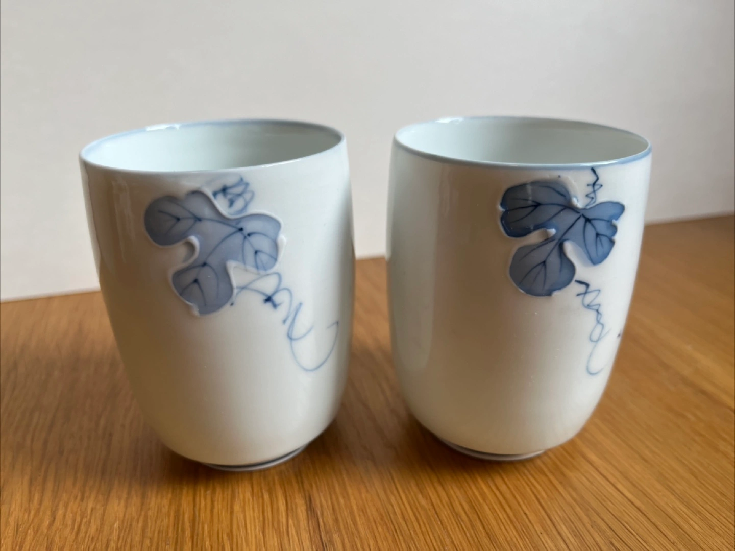 Elevate your tea or sake experience with this elegant set of two Japanese porcelain cups, each adorned with delicate blue grape vine designs. These cups are brand new and in original box.