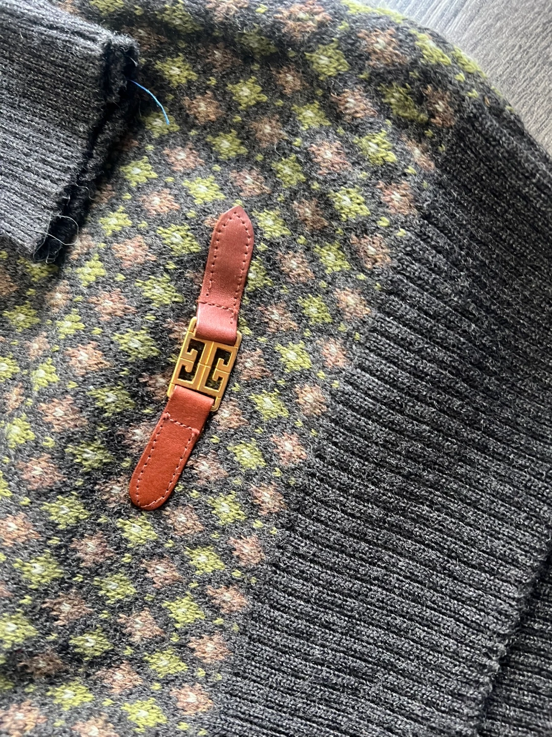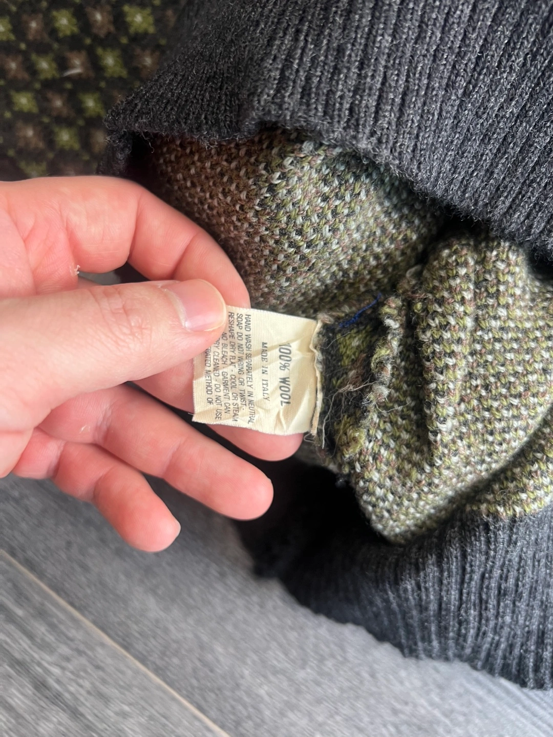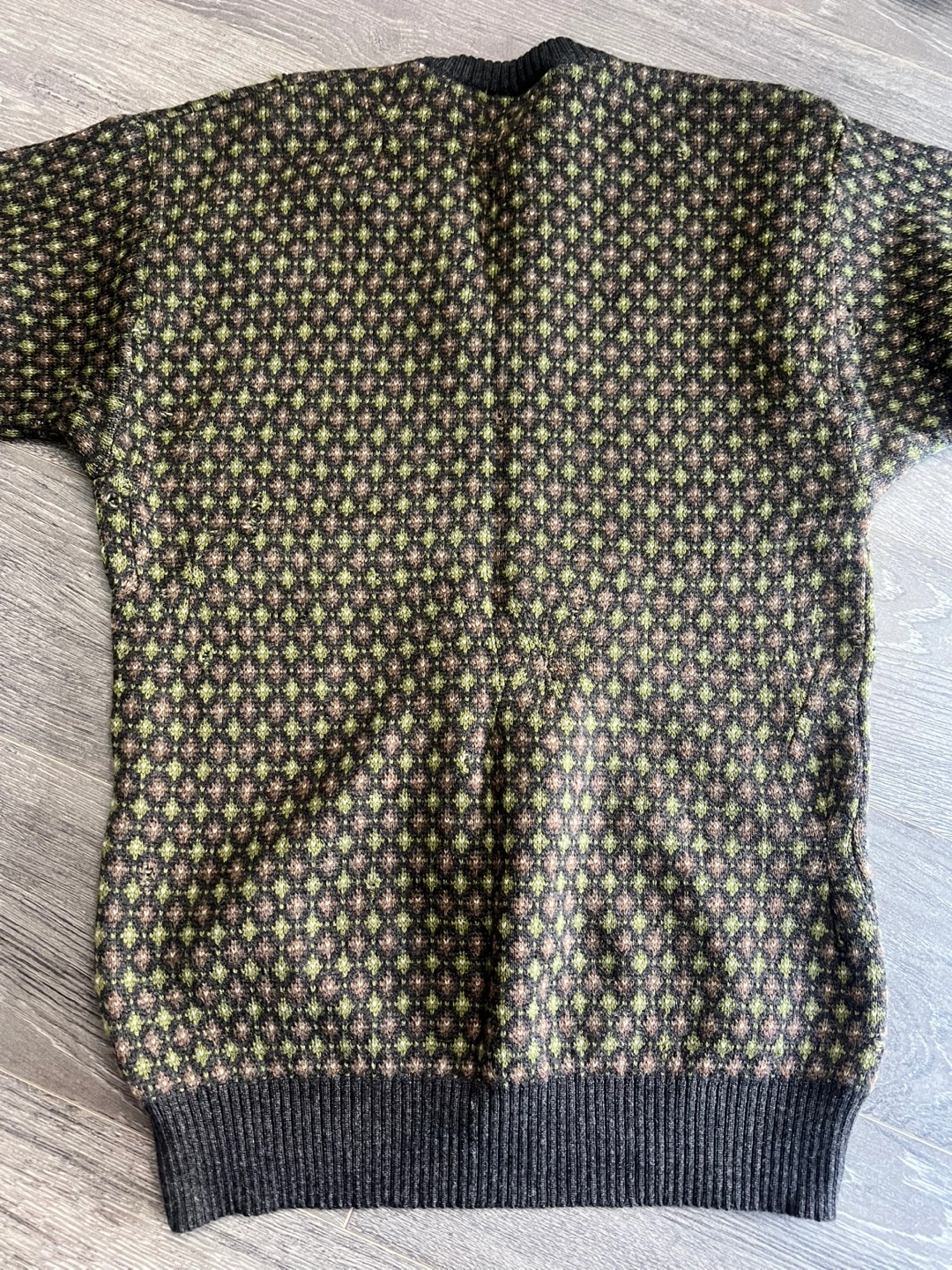 A vintage Givenchy Gentleman Paris v-neck sweater made from 100% wool. It's a size large and features a unique geometric pattern. Made in Italy.