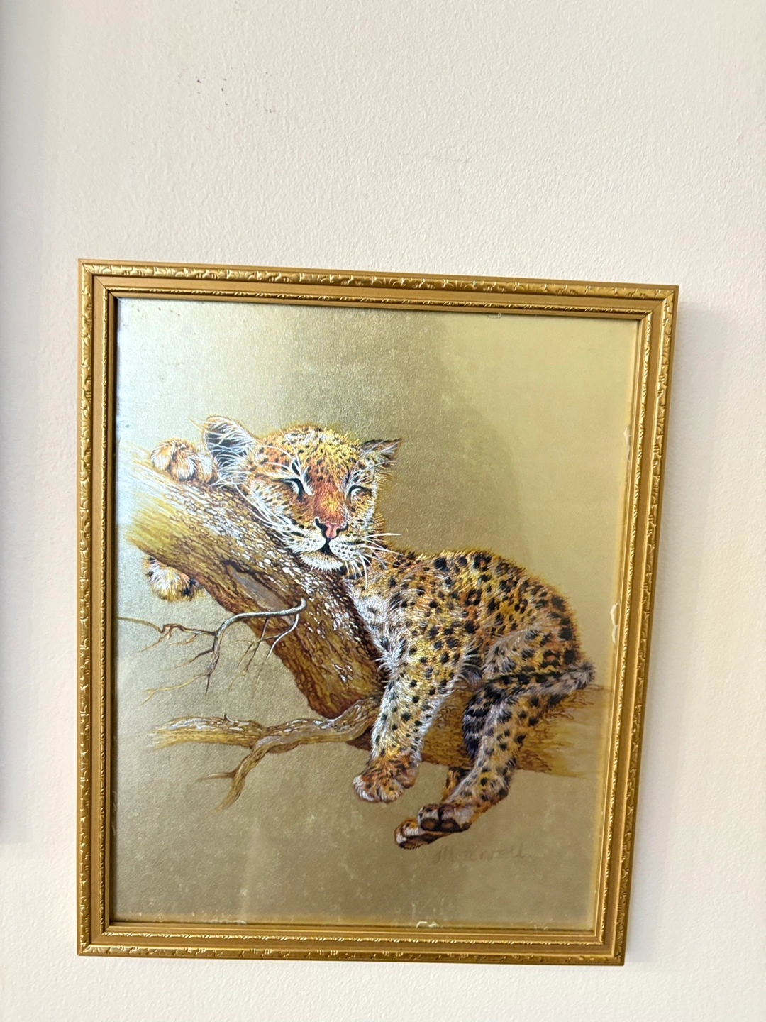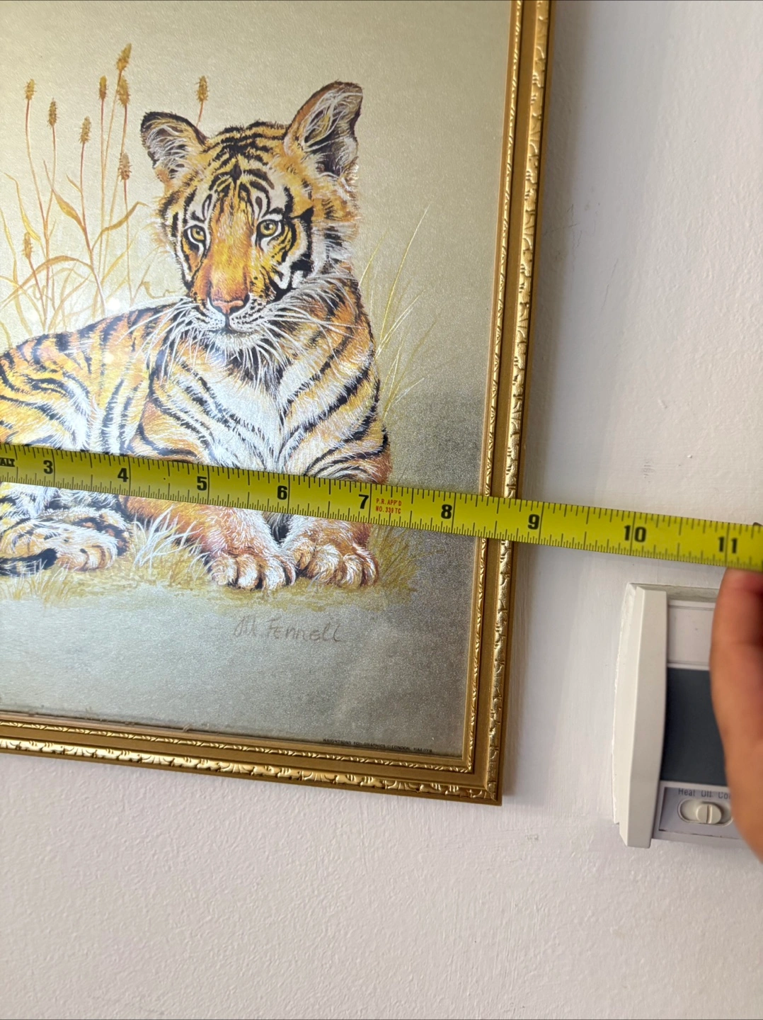 A cute framed print of a tiger cub! The frame is gold and the print is approximately 14 inches tall and 11 inches wide. Perfect for a nursery or animal lover's home $15 each or both for $25