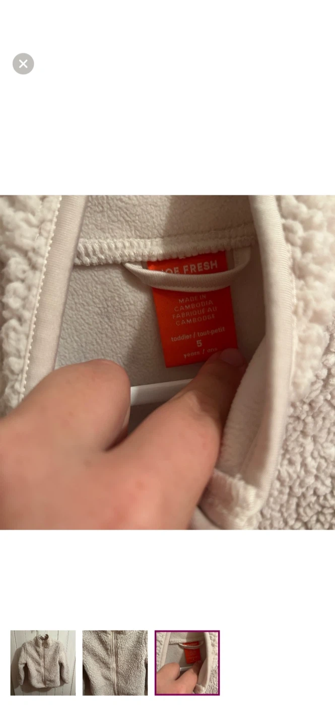 Joe fresh brand. Zip up Sherpa sweater. White in colour. Size youth 5. Like new condition $5