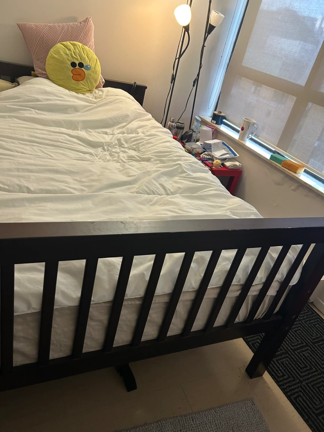 Dark Wood Queen Bed Frame with mattress