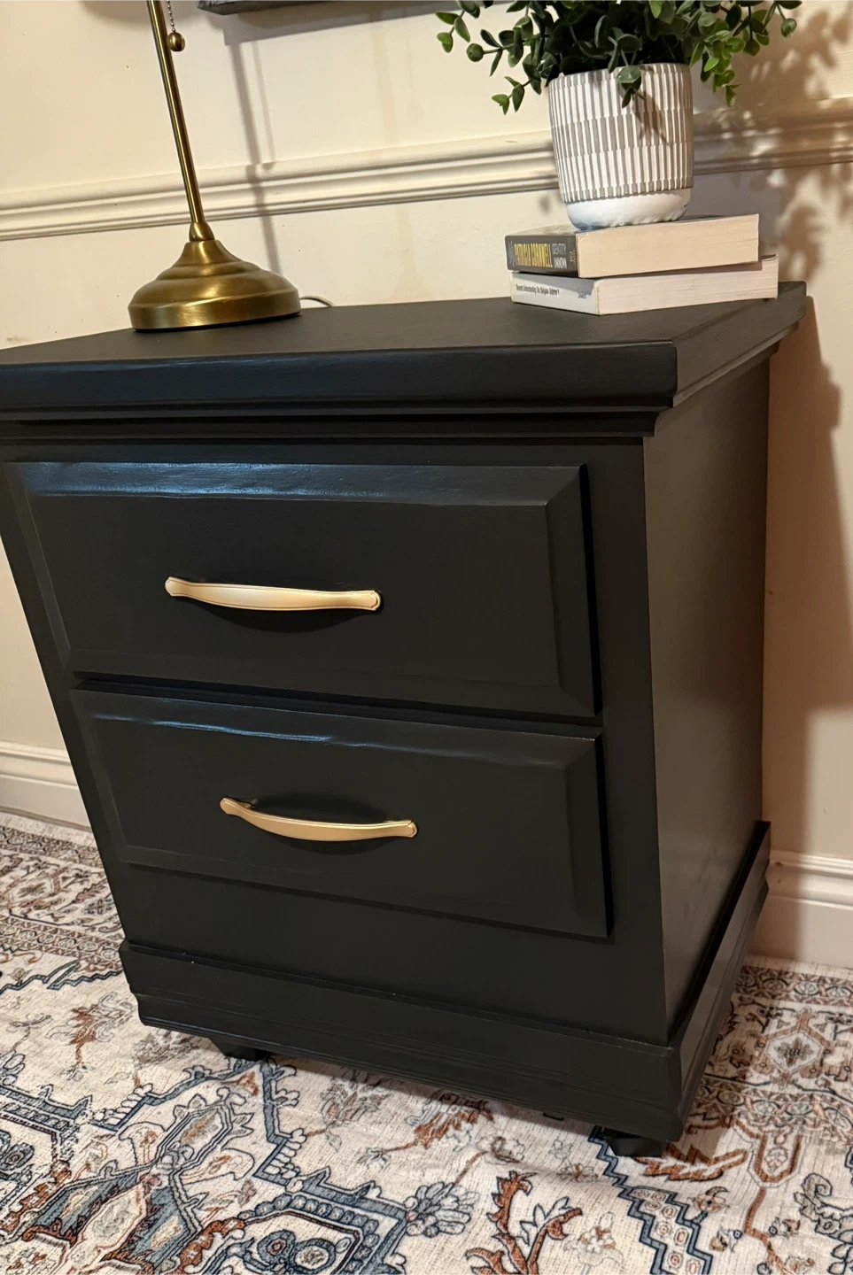Black Painted Nightstand with Drawers