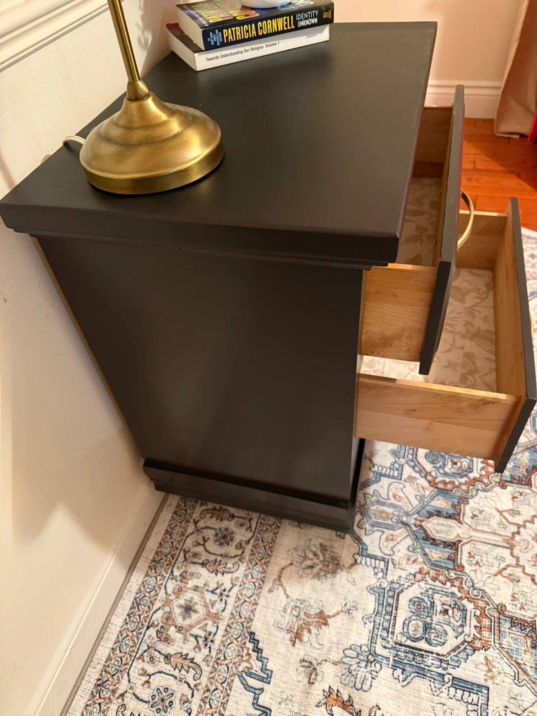 Black Painted Nightstand with Drawers