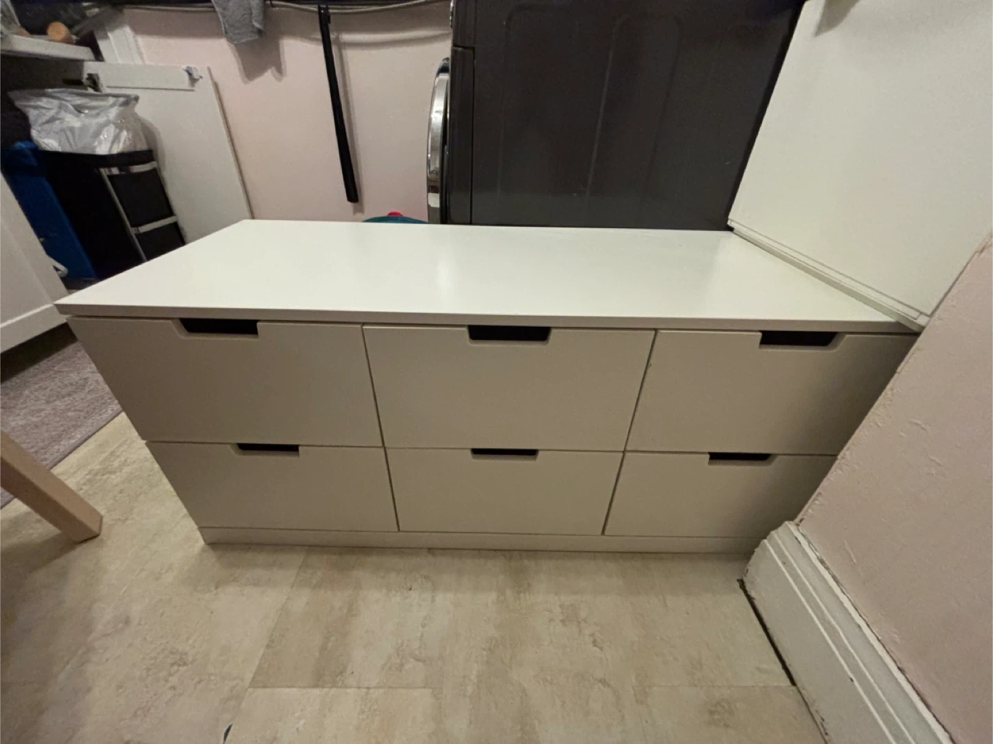 Selling a used IKEA Nordli dresser with 6 drawers! It's in good condition and perfect for extra storage.
