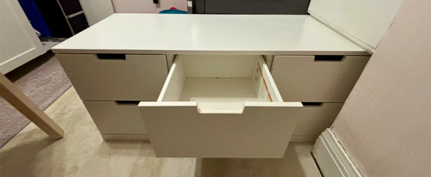 Selling a used IKEA Nordli dresser with 6 drawers! It's in good condition and perfect for extra storage.