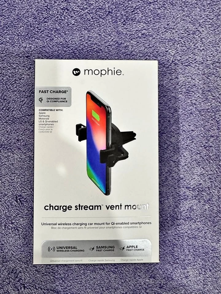 Selling a brand-new Mophie charge stream vent mount wireless car charger. Box just opened for photos, never used. Qi-compatible wireless charging for Apple, Samsung, LG & other Qi-enabled phones. Fast charge support: up to 7.5W for Apple and 10W for Samsung. Easy one-handed operation with adjustable arms to fit most phones. Charges through lightweight cases. Secure vent clip design to keep your phone in place while driving. Included in box: vent mount charger, vent attachment, extended vent attachment, dash mount adapter, QC 2.0 car charger, and micro-USB cable (all original accessories). Perfect if you want a clean, cable-free setup in your car. If Ad is up, then its still available. I'm willing to deliver in the North Quadrant of the city or your can also pick it up in Airdrie.