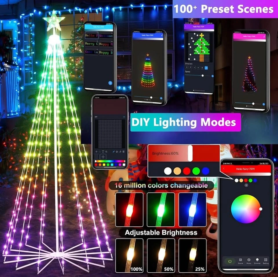 7FT 295LED Smart Color Changing Christmas Tree Star Lights with Remote, Timer, Music Sync, and Bluetooth App Control. RGB lights for New Year and Christmas decoration. Pickup in Kitchener. Cash Only. Firm Price.