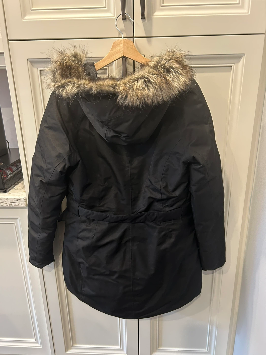 Selling a gently used The North Face women's winter coat in size medium. It's a stylish and warm option for the cold weather. The coat features a faux fur-trimmed hood and a belted waist for a flattering fit. Perfect for staying cozy this winter!