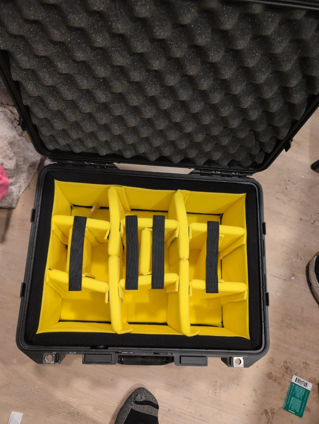 This Pelican Air case is designed for protecting sensitive equipment. It features a customizable yellow padded interior with adjustable dividers to keep items secure. Built tough and lightweight, it's made in the USA. Great for photographers or anyone needing to transport gear safely!