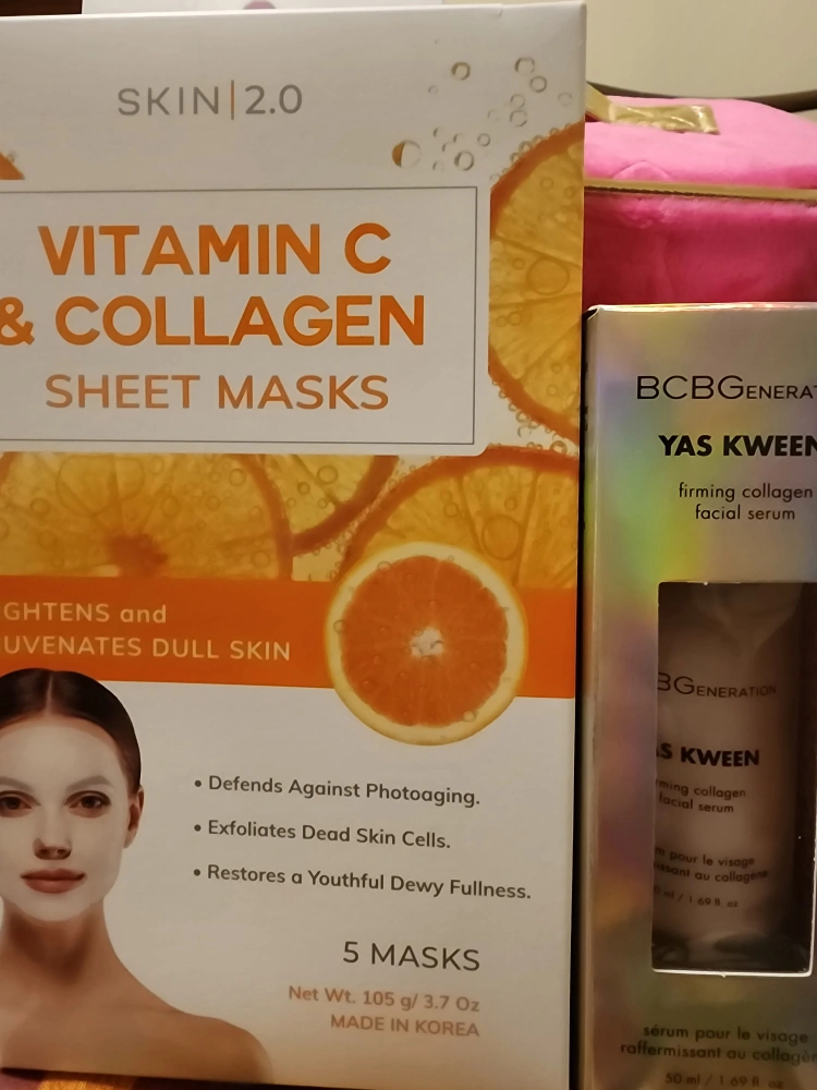 Box of 5 Vitamin C and Collagen sheet masks individually packaged