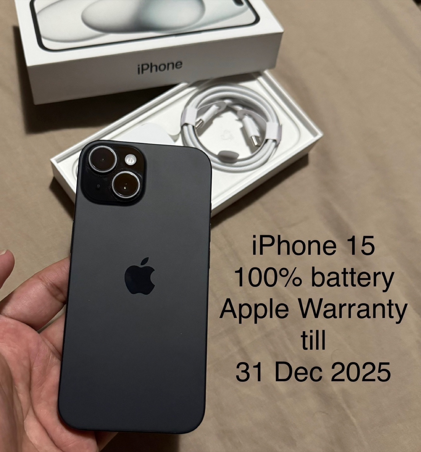 iPhone 15 - 128GB - 100% Battery - Apple Warranty Dec 2025
