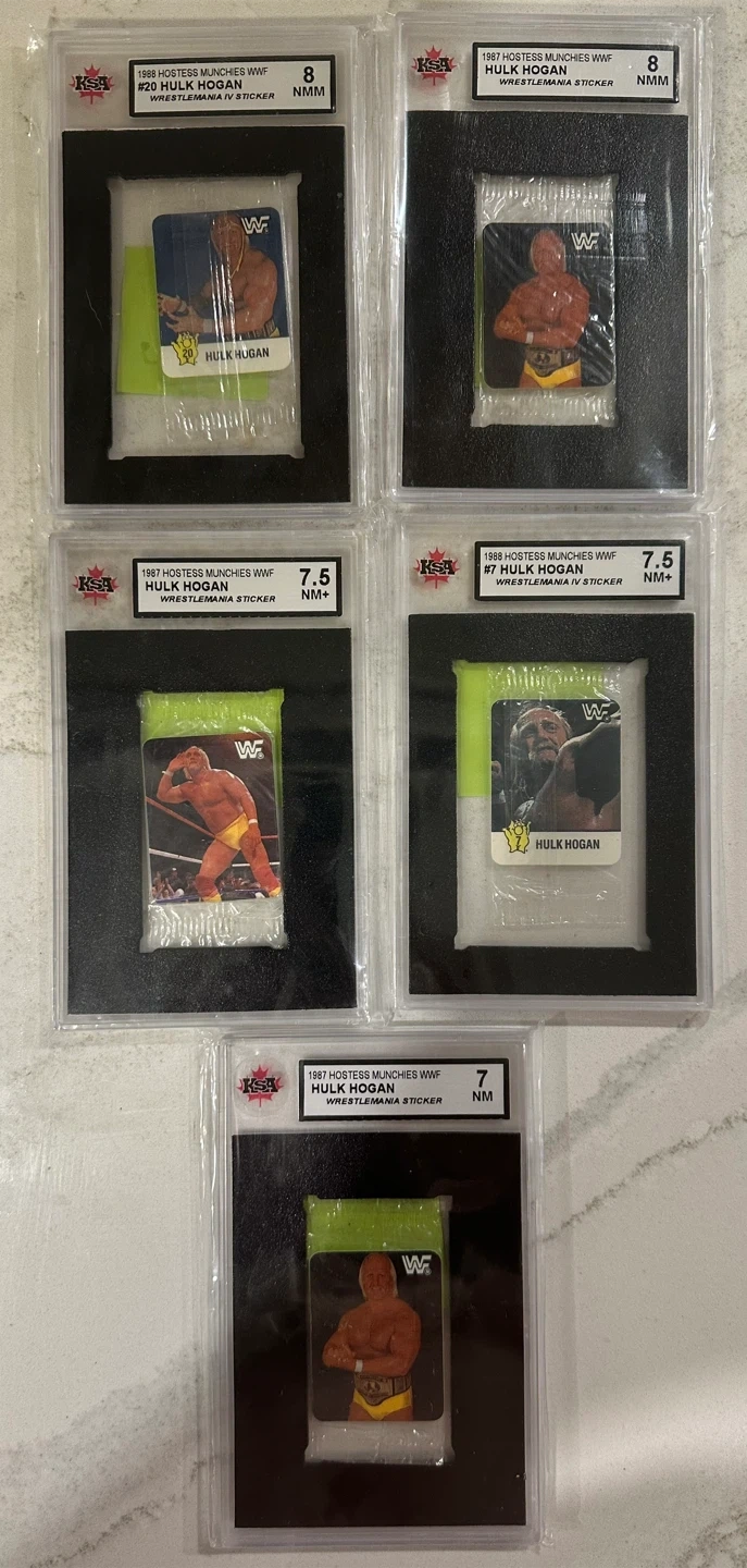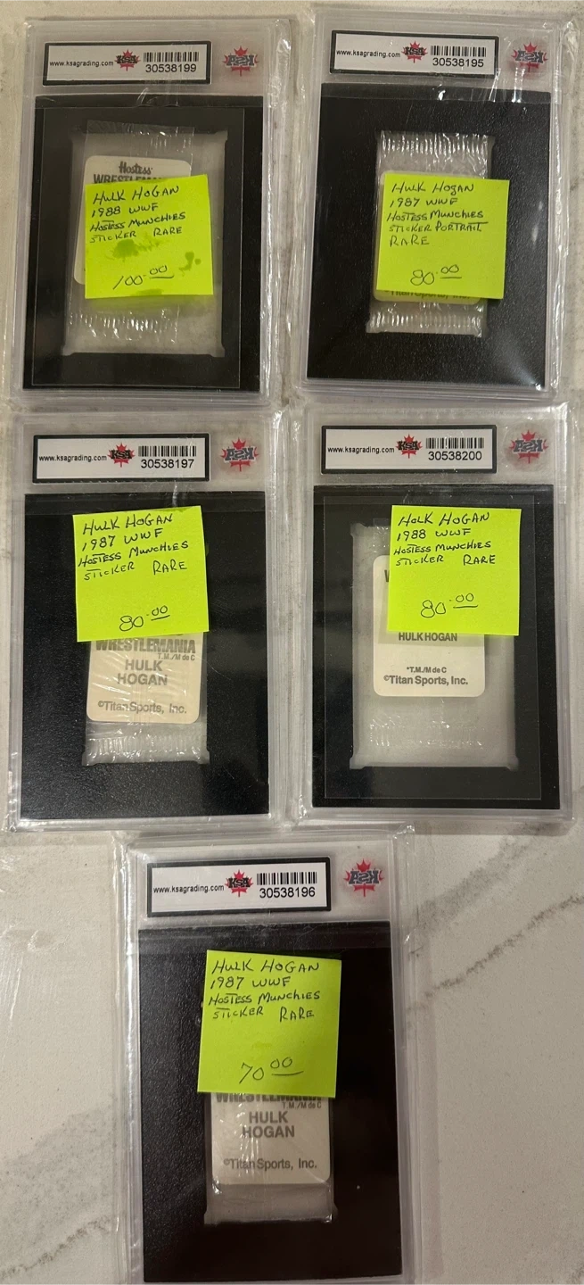 15Selling KSA GRADED HOSTESS MUNCHIES Hulk Hogan WWF wrestling cards. These are rare and graded. Prices are on the back of the card photos in the ad.