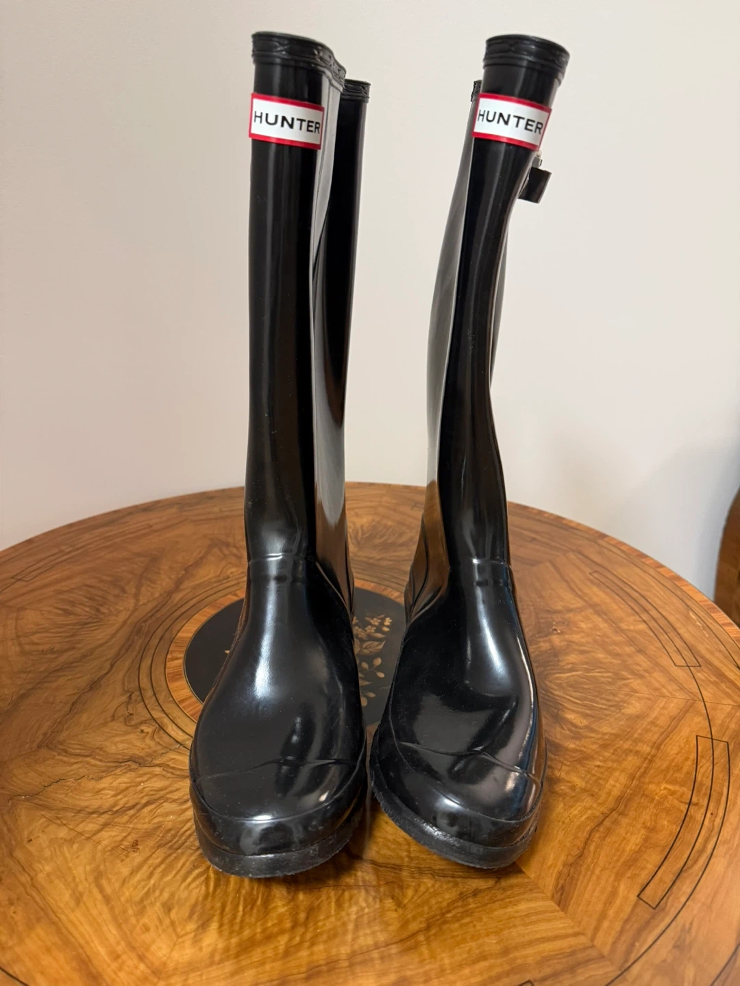 Selling a pair of Hunter rain boots in black. They are a US size 9. These boots are in perfect condition, never been worn.