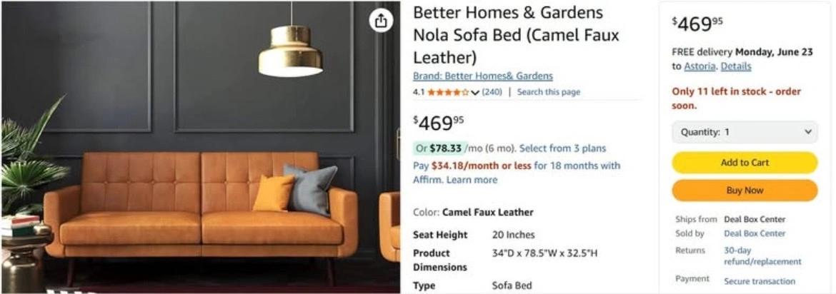 Selling a Better Homes & Gardens Nola Sofa Bed in Camel Faux Leather. It's a stylish and functional piece for any home!