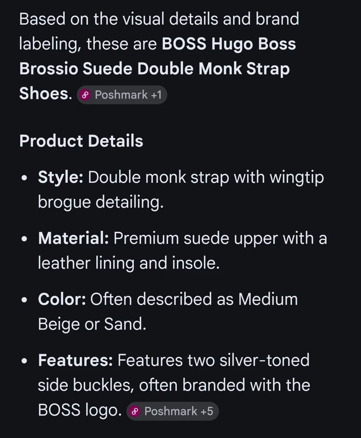 * Features: Two silver-toned side buckles, often branded with the BOSS logo
