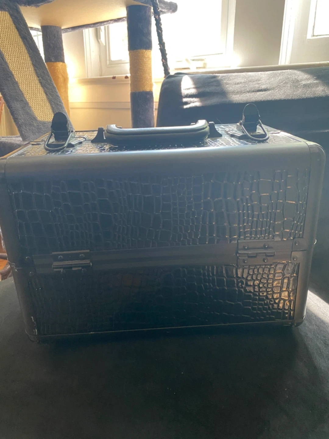NEED GONE ASAP!! Selling a professional black makeup/cosmetic case with a crocodile pattern. It has multiple compartments inside for organizing your makeup or other items. Perfect for travel or keeping your things tidy at home! I never used it. Pickup ONLY. Price non-negotiable. (Yup that’s a joke - it’s FREE)