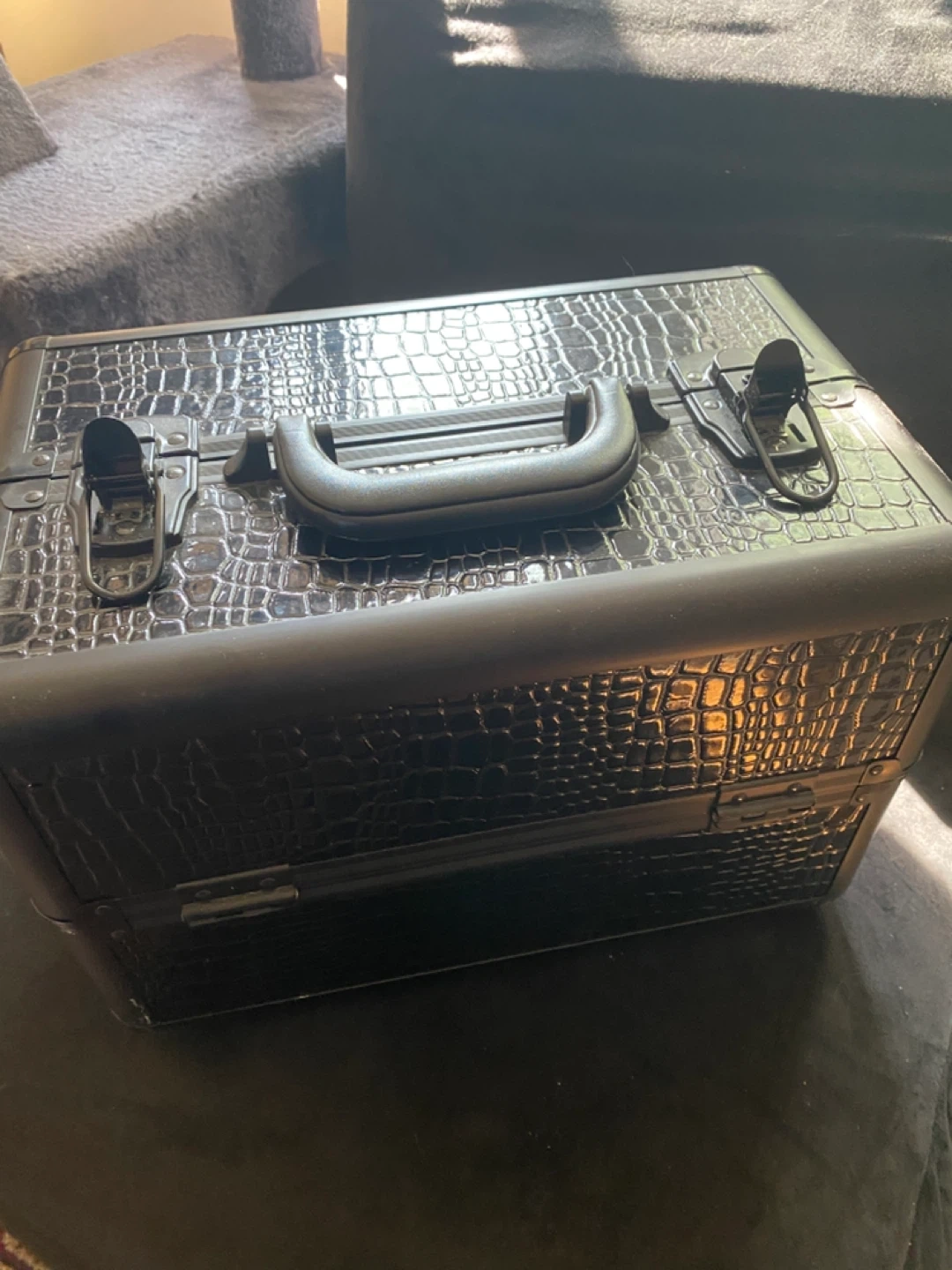 NEED GONE ASAP!! Selling a professional black makeup/cosmetic case with a crocodile pattern. It has multiple compartments inside for organizing your makeup or other items. Perfect for travel or keeping your things tidy at home! I never used it. Pickup ONLY. Price non-negotiable. (Yup that’s a joke - it’s FREE)