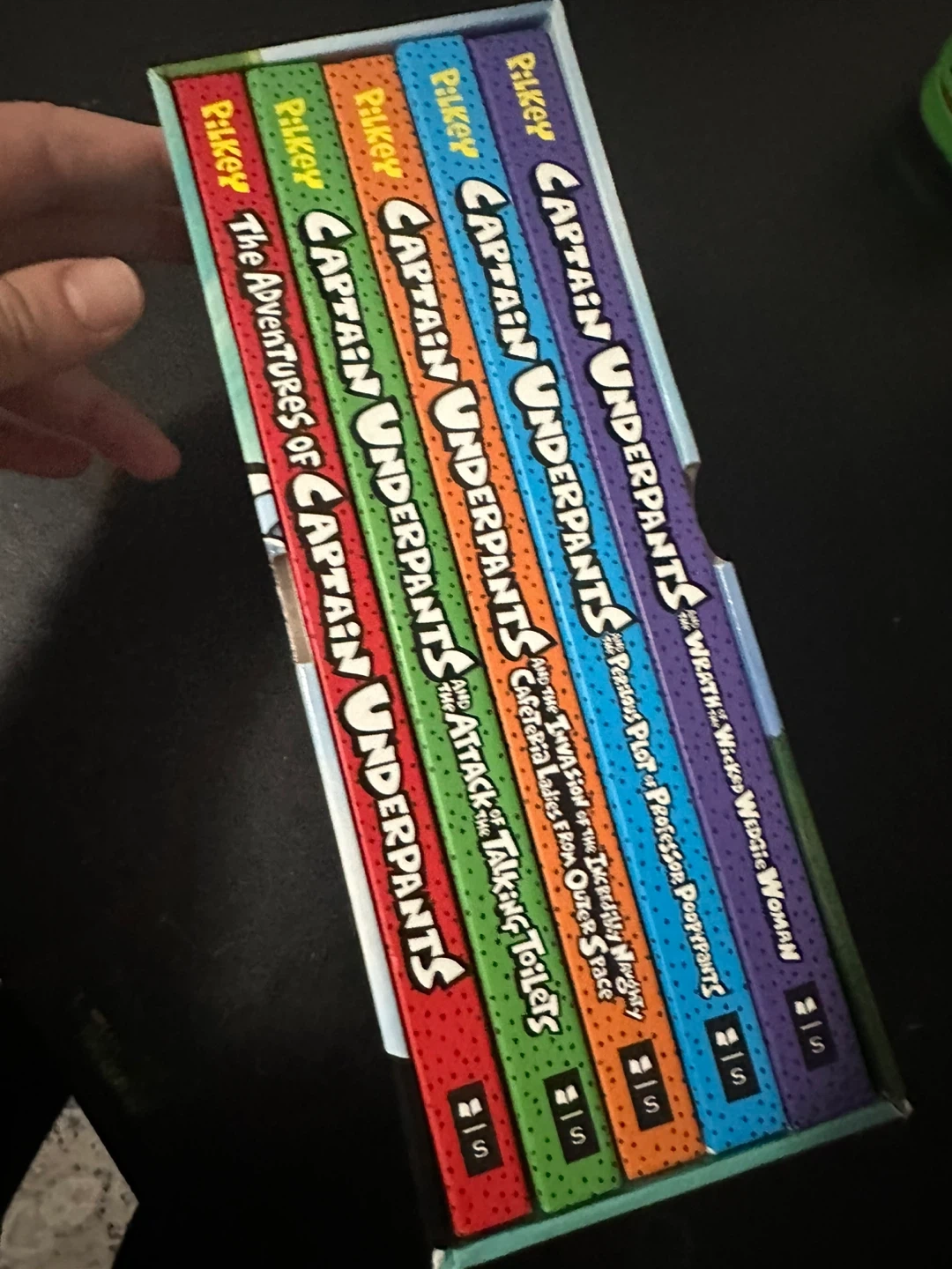 This boxed set includes five epic novels from The Captain Underpants series by Dav Pilkey. It's perfect for young readers who enjoy humour and adventure. The collection features the first five books in the popular series.