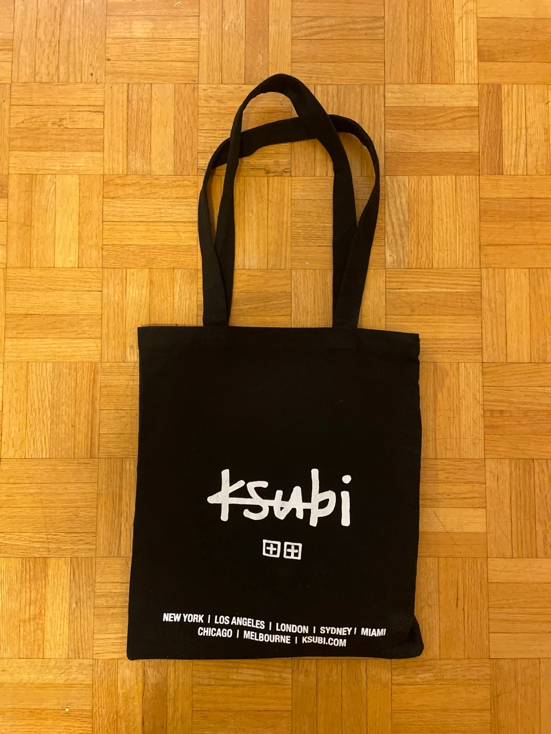 100Selling a Ksubi black tote bag! It's in great condition and ready for a new home. Perfect for carrying your everyday essentials in style. The bag features the Ksubi logo and design. A stylish and practical accessory!