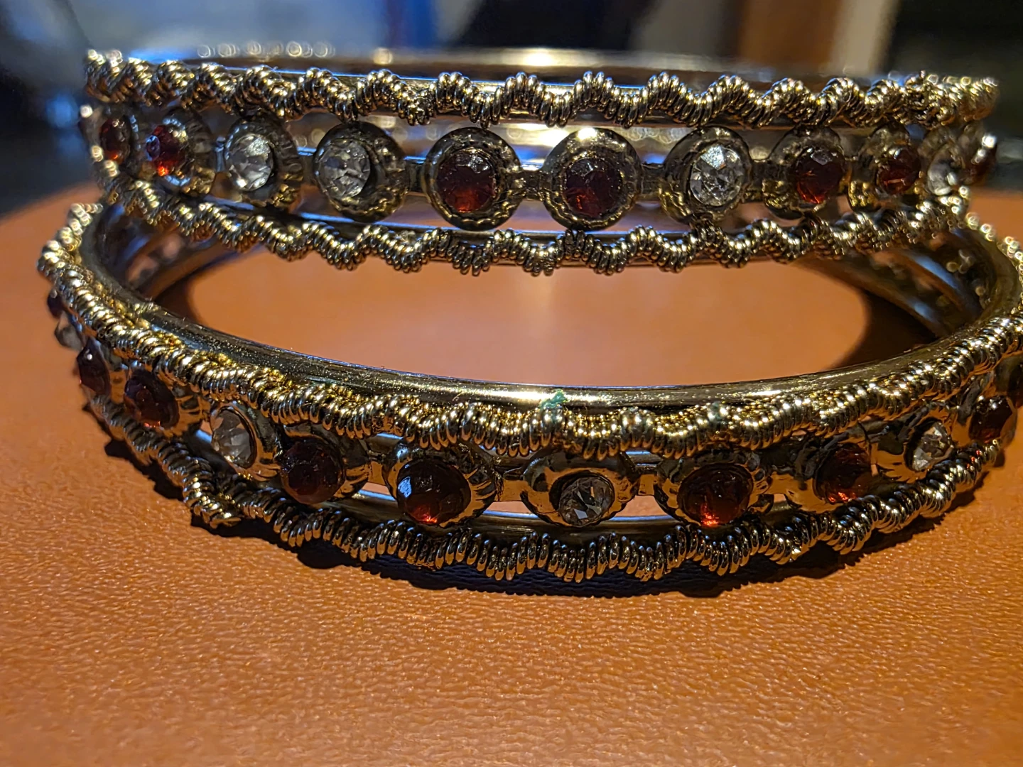 Set of 2 Gold-Tone Bangles with Red and Clear Gems