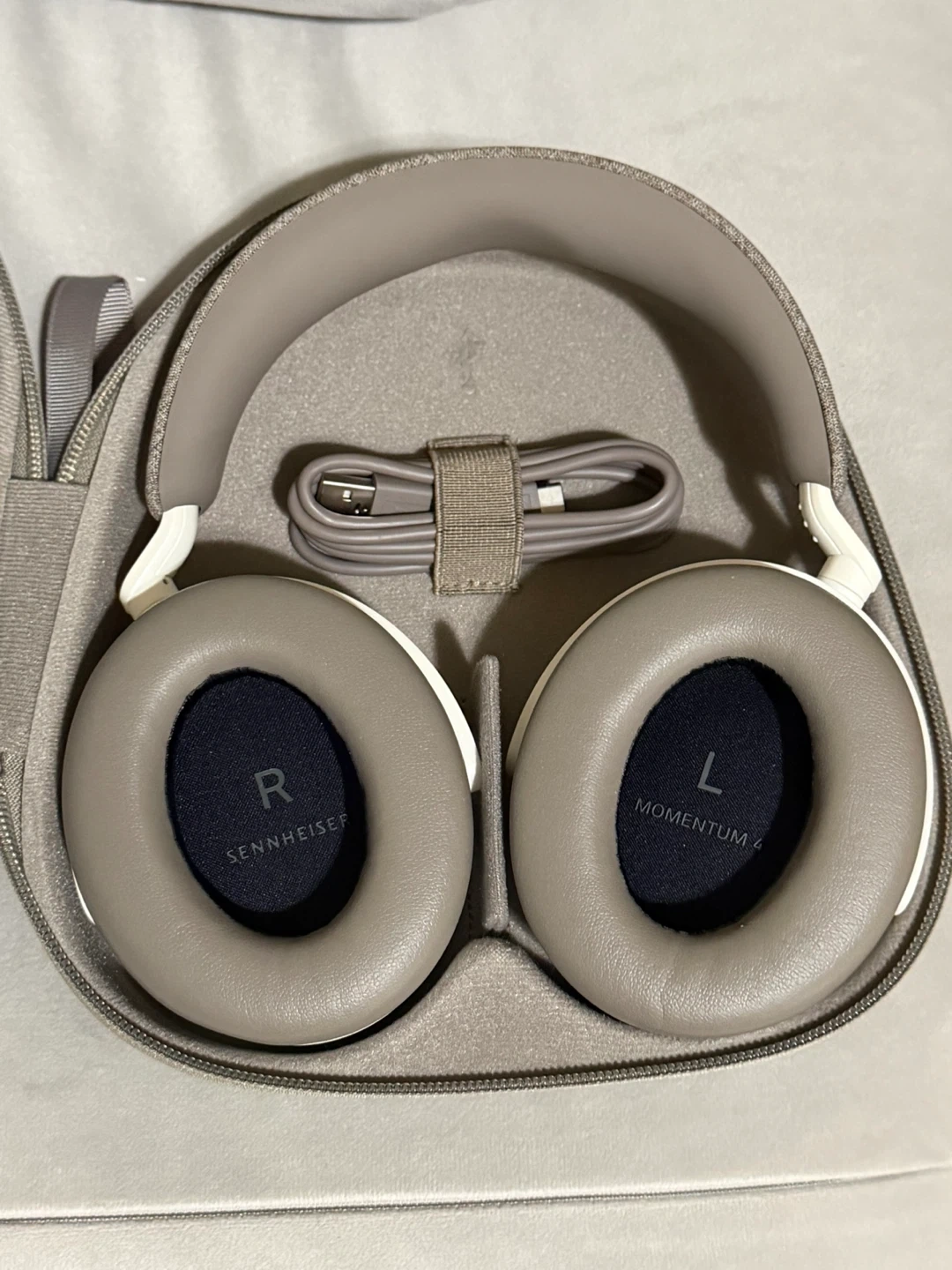 Sennheiser Momentum 4 wireless over-ear headphones in white.