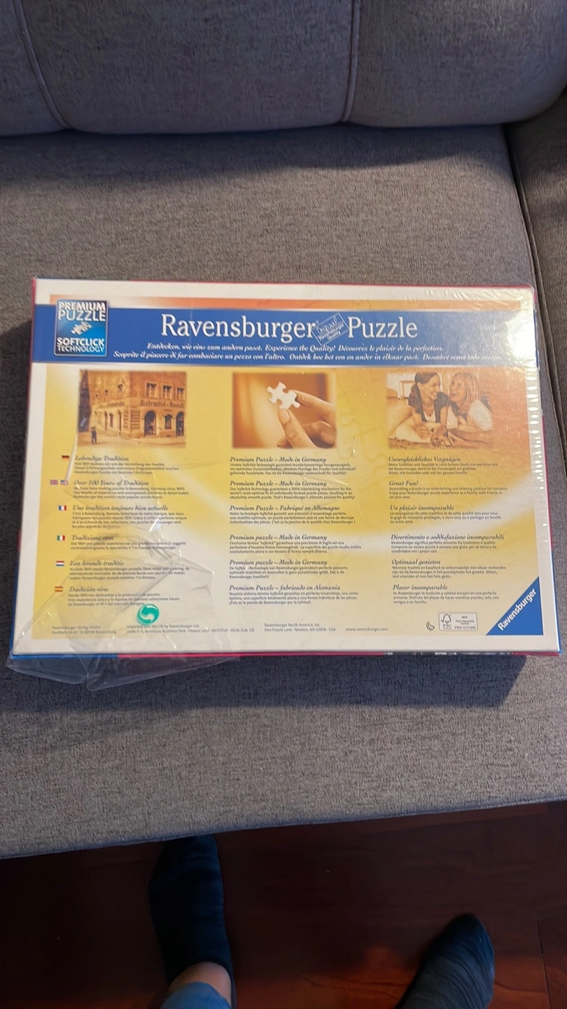 1000 piece jigsaw puzzle featuring different covers of Barbie Collector magazine. Made by Ravensburger. Premium Puzzle, Softclick Technology.