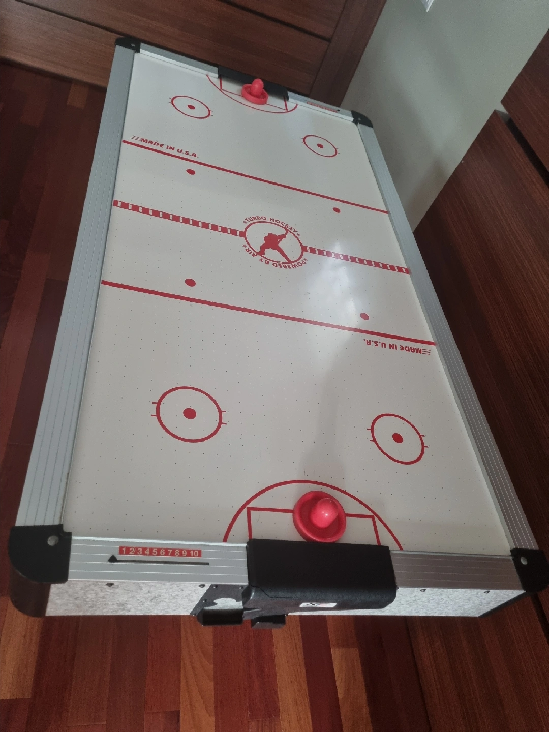 Selling a KT Sports air hockey table. It's in good condition and ready for some fun games! Comes with two pucks and two strikers