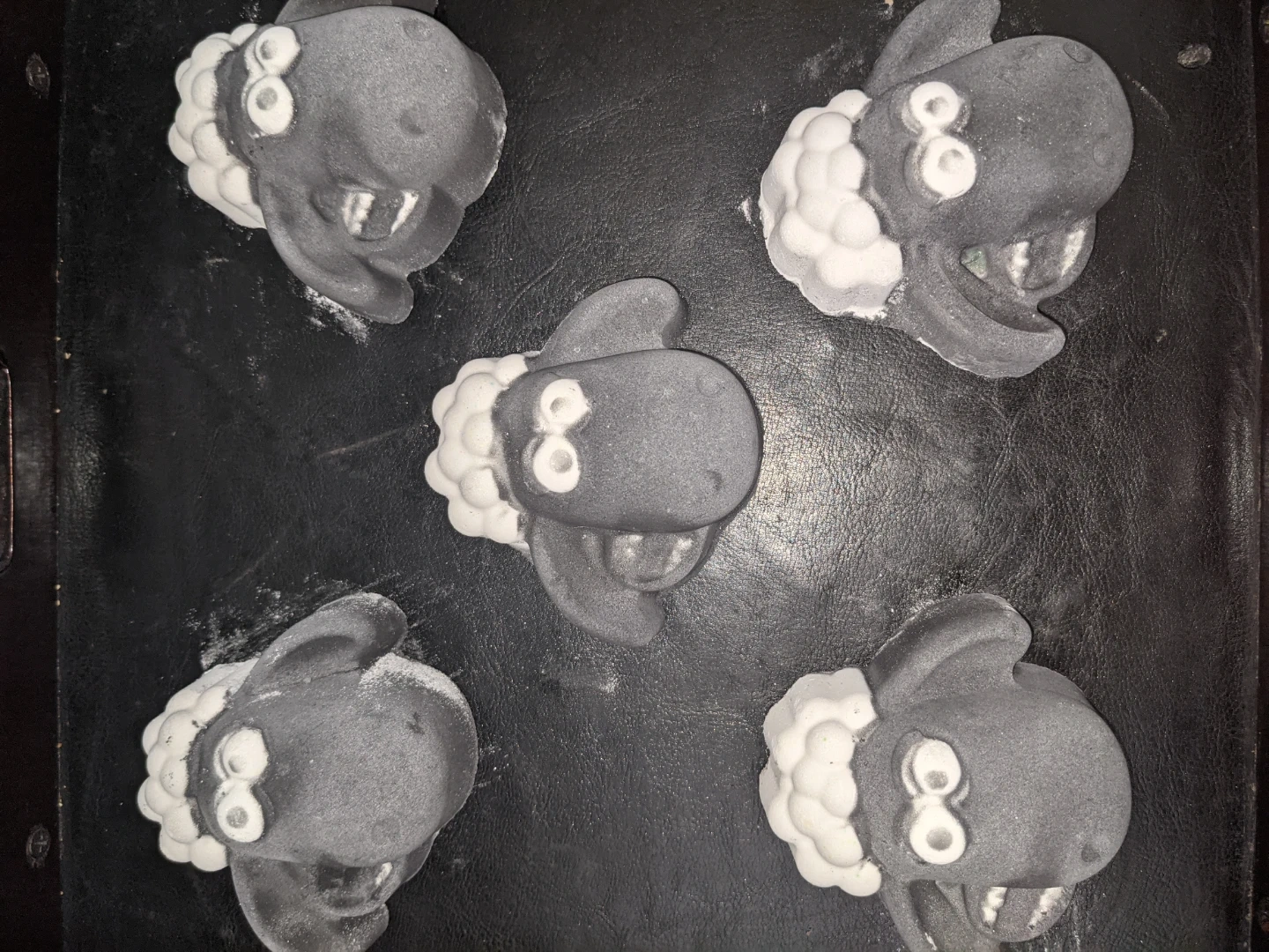Five fun bath bombs shaped like little sheep. They're great for a relaxing soak in the tub. Made with ingredients to help you unwind.