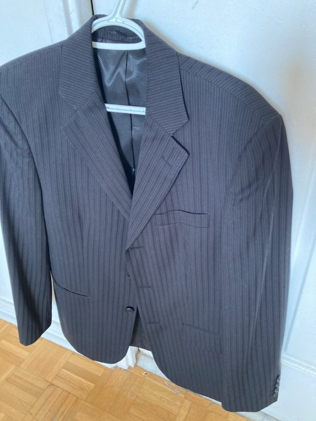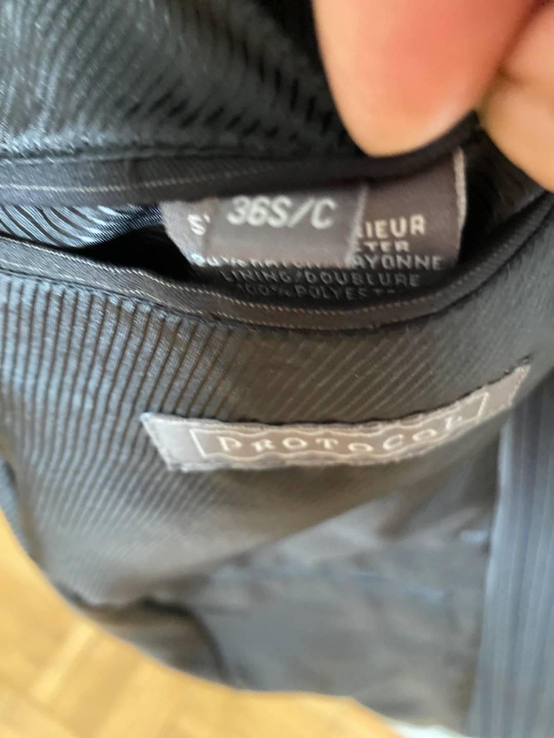 Men's Protocol brand blazer. Dark grey with thin pinstripes. Size small. Three button closure. Two pockets. Excellent condition. For (sale or trade)..π¨π¦