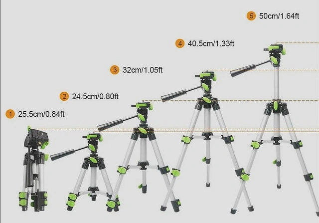 Matches devices with 1/4"-20 threaded mount. Quick Release Plate with 1/4"-20 Screw Mount for fast device connection. Compatible with most Laser Levels, Digital Cameras, Lenses, Camcorders, Binocular, Telescopes, Telemeter, Rangefinder, etc. Provide 360-degree Rotation Panoramas, allows you to rotate at any angle horizontally and vertically. The Built-in Bubble View Level can help you adjust the angle and accuracy. The adjustable laser tripod head's movement is controlled by a single positioning arm and a separate knob which allows for 90°vertical tilts. 3 section legs height adjustment buckle, extended center column to meet your different needs. Leg with quick lock adjusts from 9.6" to 19.7", Maximum carrying capacity: 9LB. Made from high-quality aluminum. Net weight only 0.8LB and minimum size of 0.8 feet makes it a portable and practical piece of equipment. Package including a carrying bag, perfect for travel and transport.