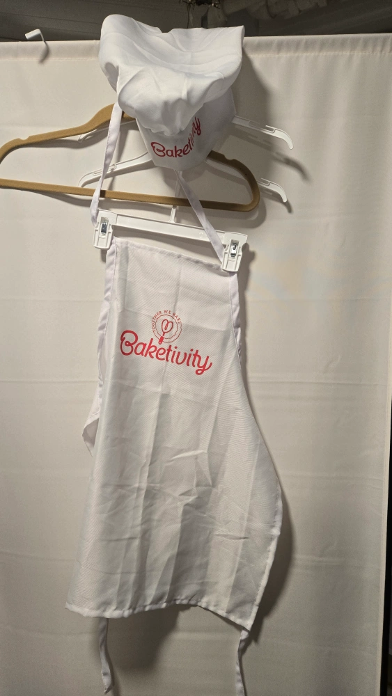 I have a Baketivity apron and chef hat set for kids. It's in new condition and perfect for your little baker! Can be used as a Halloween costume.