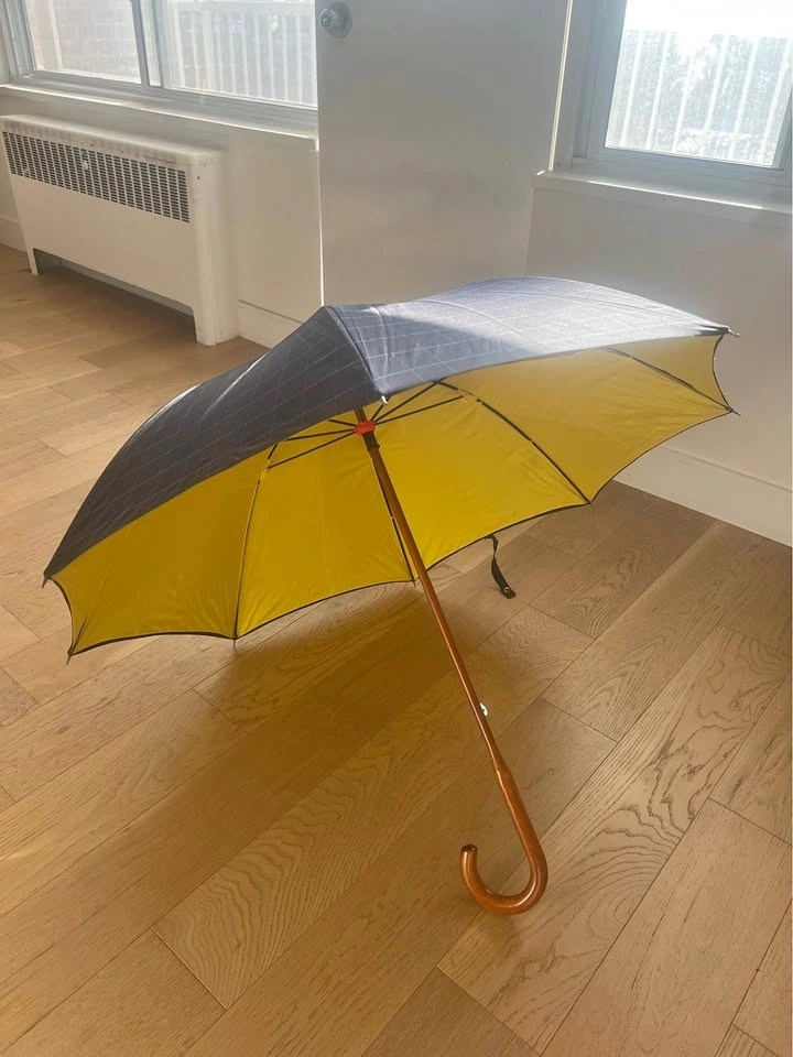 Moving out sale! Selling my London Underground umbrella. Classic style and sturdy, I’ve used this umbrella a lot over the years. There is a small crack in the varnished handle, but it is not noticeable. Outside is checkered blue and inside is banana yellow. Pick up from King and Dufferin, or I can meet somewhere convenient.