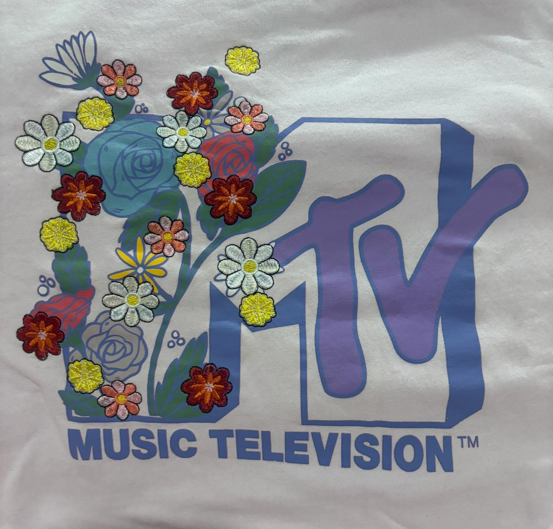 MTV Music Television Pink Embroidered Floral Sweatshirt | Women’