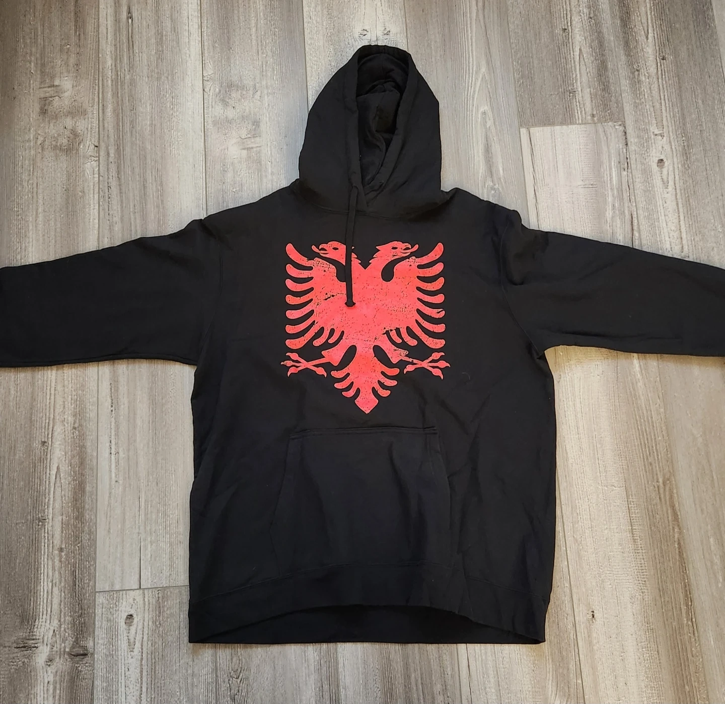 Selling a black hoodie with a striking red eagle design on the front. It's in great condition and ready for a new owner! Size is XL. The material is soft and comfortable, perfect for everyday wear. (Payment: Cash Only)