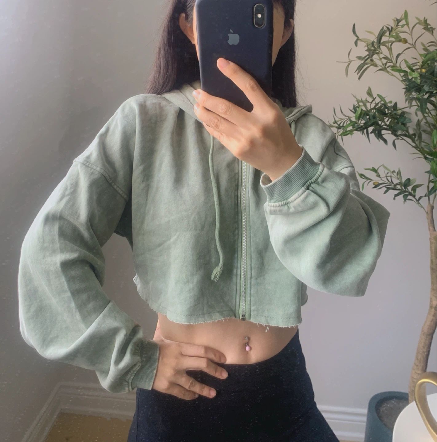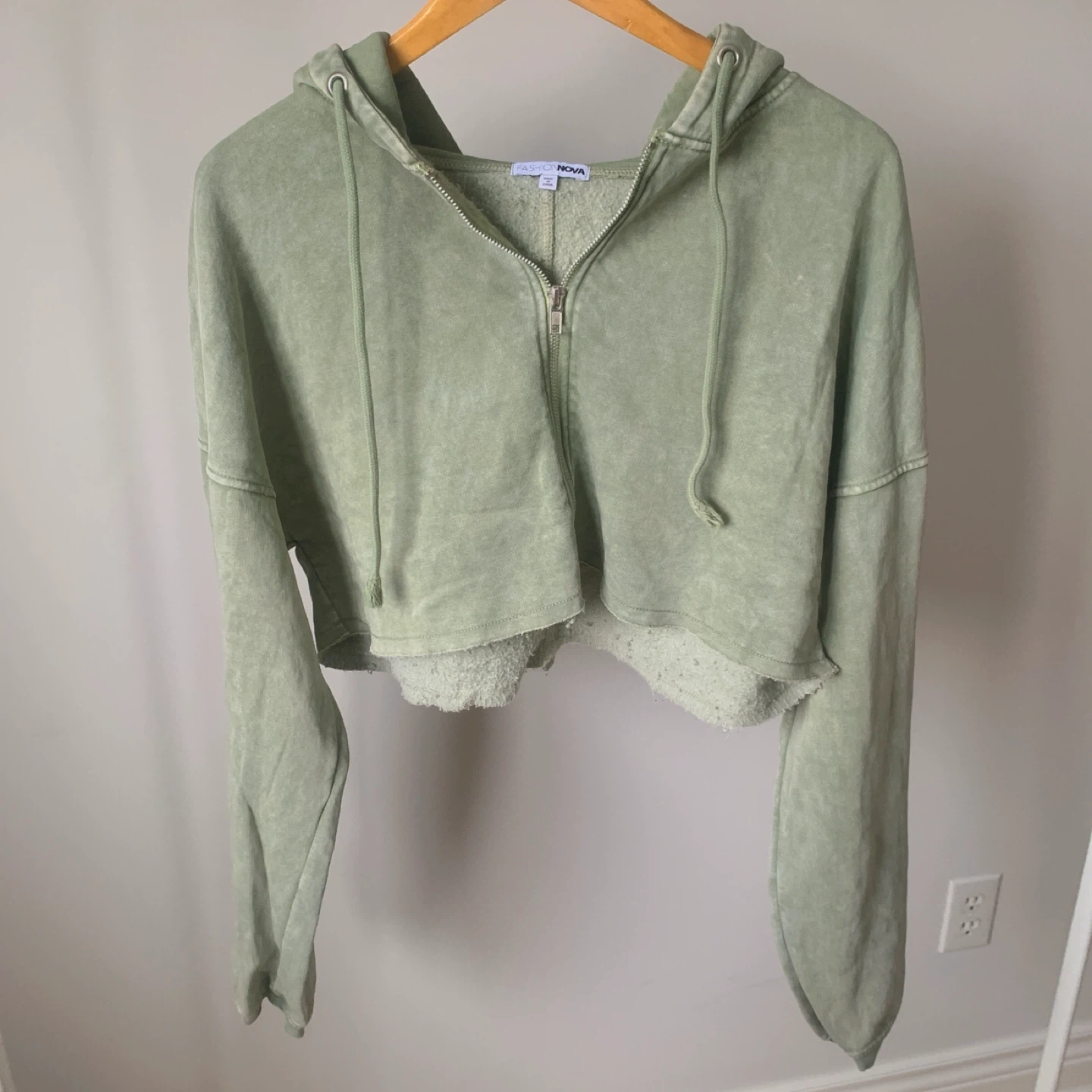 Fashion Nova Sage Green Cropped Hoodie Size M New