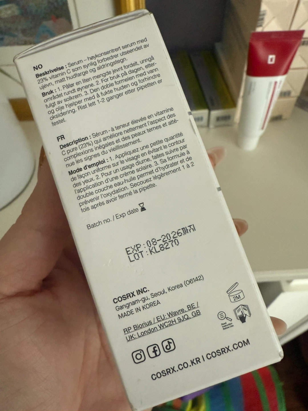 Selling a COSRX Vitamin C 23 serum. This serum contains Super Vitamin E + Hyaluronic Acid to improve skin condition and even skin tone. It comes in a 20g / 0.70 oz size. Expiry date is 2026 August