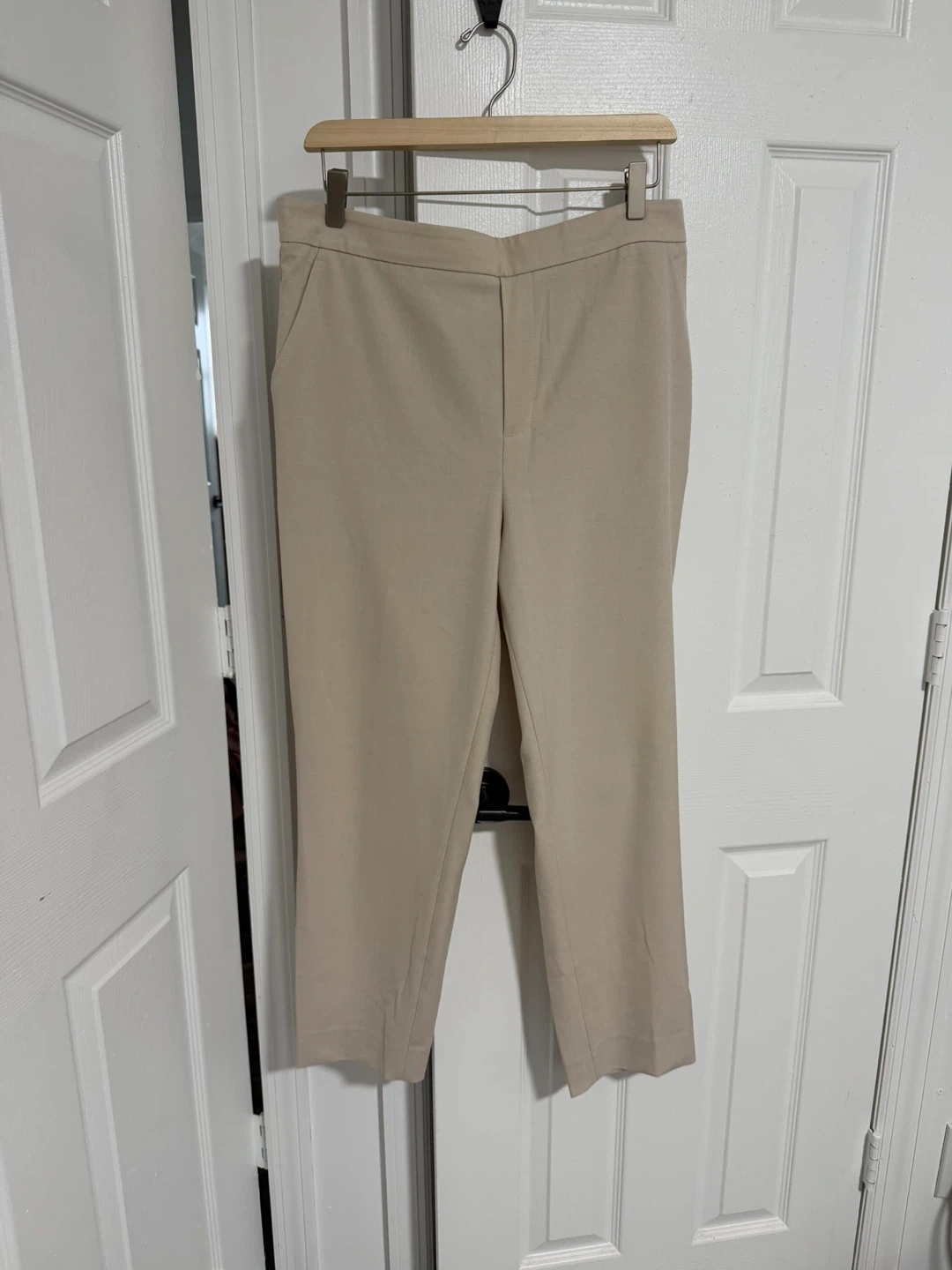 2 pair of Banana Republic Tailored straight leg pants with a clean front and polished finish. Versatile design that pairs easily with blazers and blouses. Comfortable, structured fit for everyday wear and office looks. Cream color complements neutral and bold tops.