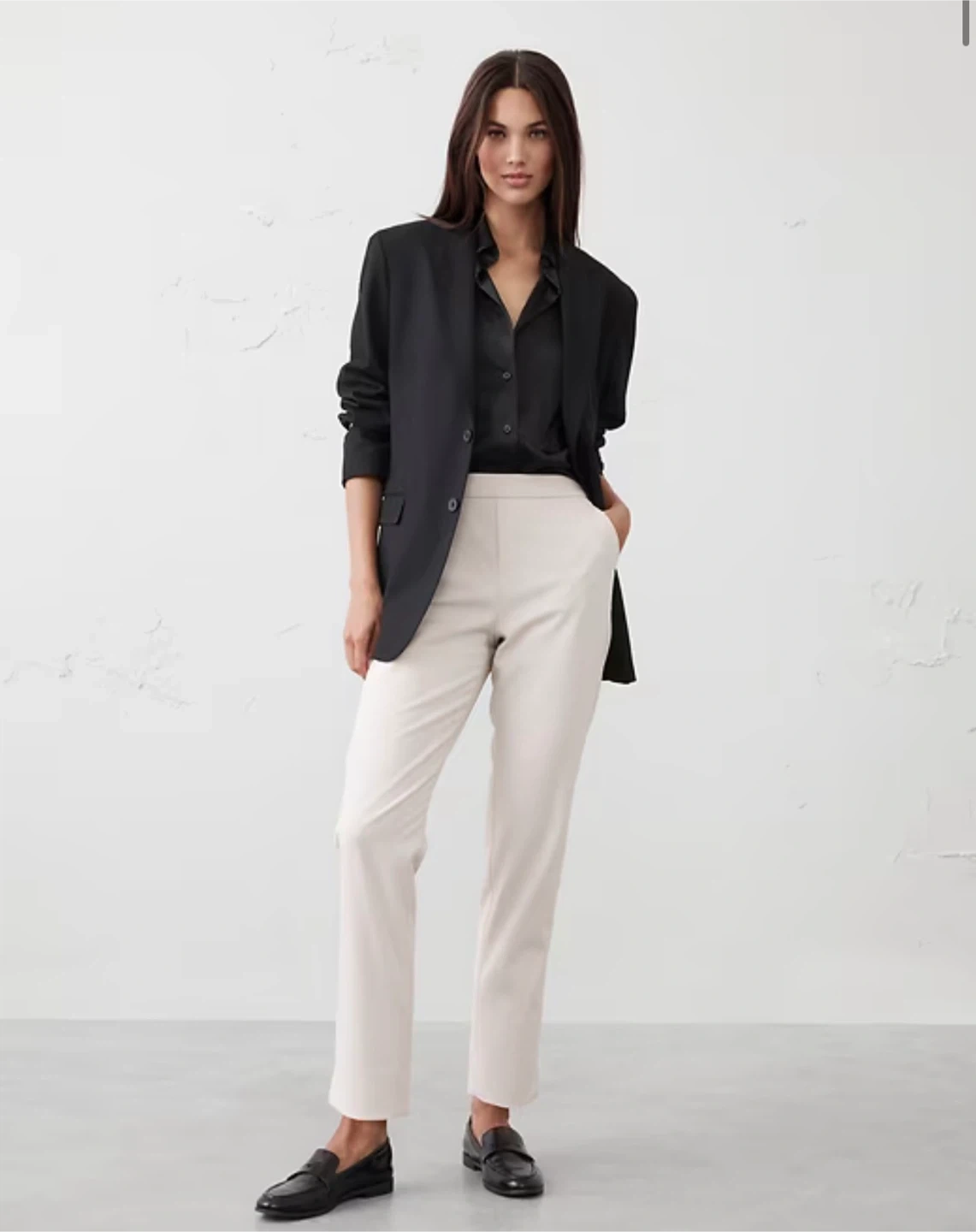 2 pair of Banana Republic Tailored straight leg pants with a clean front and polished finish. Versatile design that pairs easily with blazers and blouses. Comfortable, structured fit for everyday wear and office looks. Cream color complements neutral and bold tops.