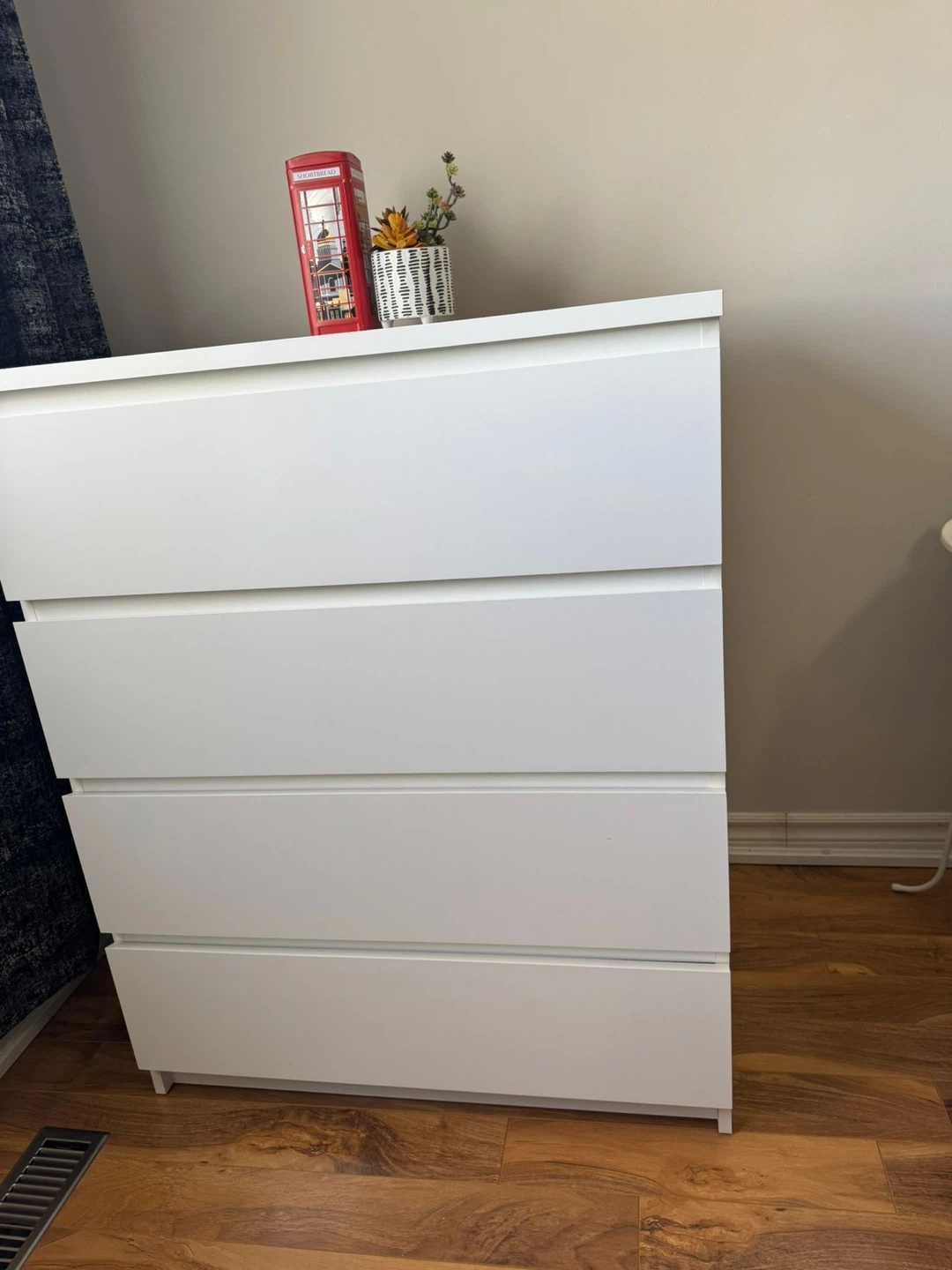 Solid IKEA MALM 4-drawer chest in white — one of IKEA's most popular bedroom storage pieces.
