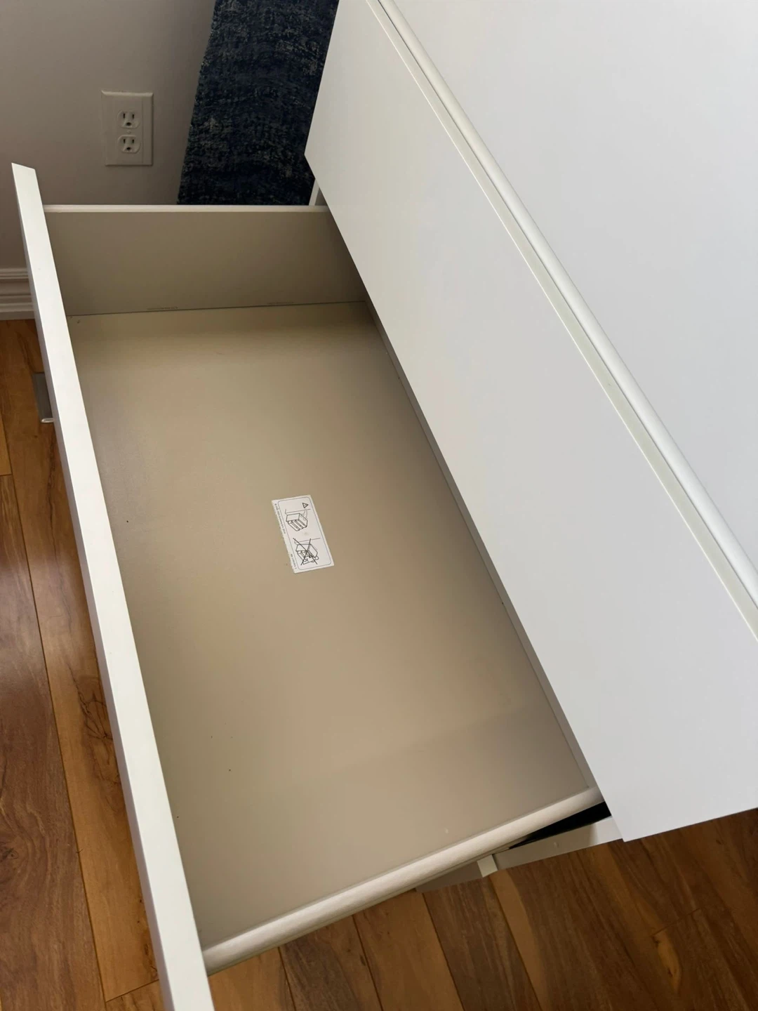 Clean, modern look with smooth flat-front drawer faces. All four drawers slide smoothly and are fully functional. Great for a bedroom, nursery, or hallway.