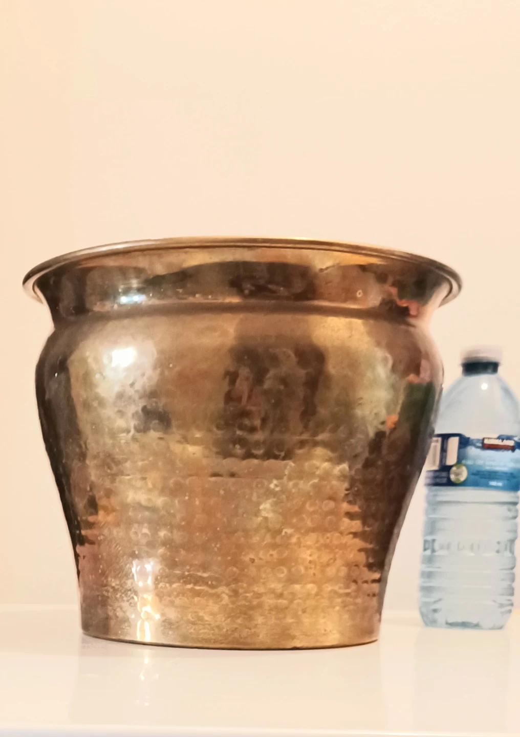 This hammered brass planter is in good condition, perfect for showcasing your favourite plants and flowers. It's a charming piece that brings warmth and character to any space.