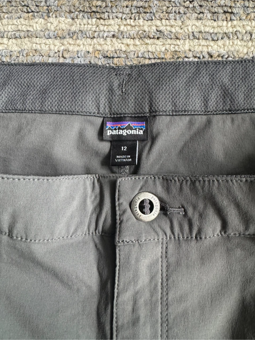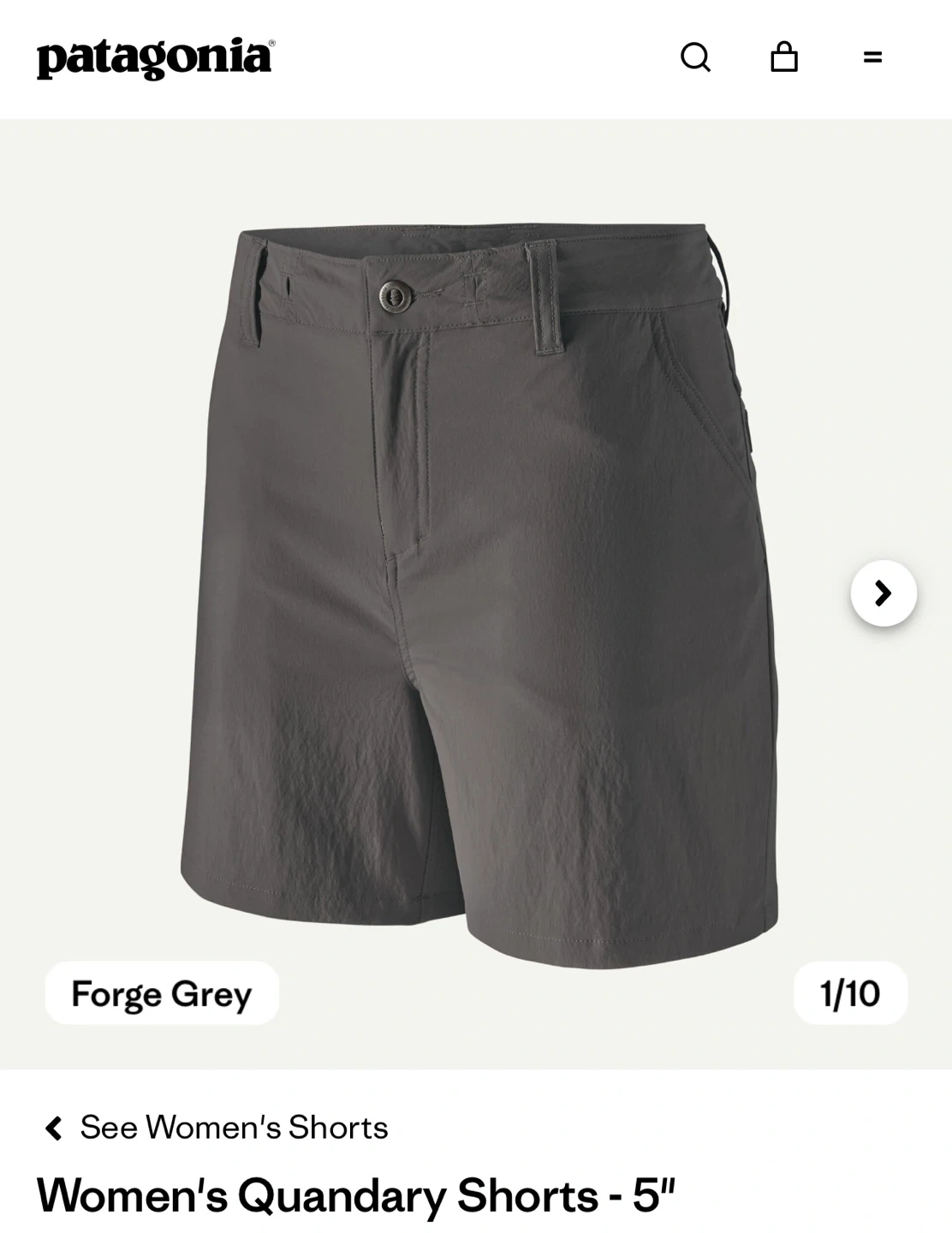 These Patagonia Women's Quandary shorts are size 12 in Forge Grey. They're made with durable, quick-drying fabric, perfect for outdoor adventures or casual wear. Features include a zippered pocket for secure storage.