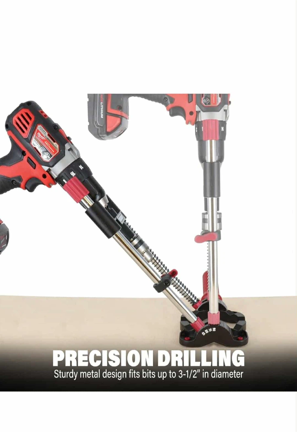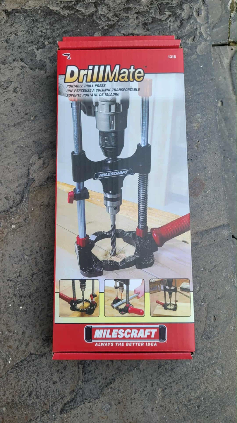 Check out this Milescraft DrillMate portable drill press! It's great for drilling straight, accurate holes and can be used almost anywhere. The V-groove ensures accuracy on round surfaces, and it can drill at multiple angles (45°, 60°, 75°, and 90°). Sturdy metal design fits bits up to 3-1/2" in diameter. Save time on your projects with this versatile drill guide